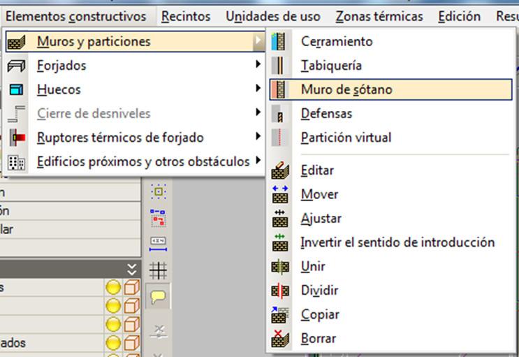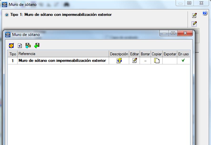 Definimos el muro con las diferentes opciones o elegimos uno de la base de datos. Aceptamos los cuadros y nos aparecen los tipos de sótano disponibles para introducir. Cada elemento constructivo, se graba en un fichero de extensión .bibcype y dentro de la carpeta: