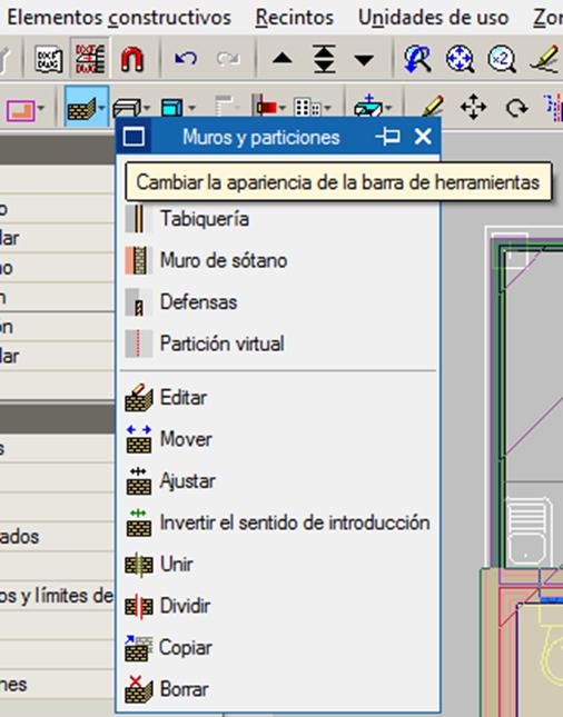 Dentro de cada elemento constructivo nos encontramos con una serie de iconos, referidos a comandos para utilizar con los elementos constructivos ya introducidos.