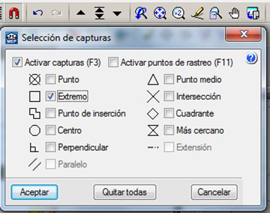Con el botón editar y copiar, podremos editar el muro que hayamos definido o elegido. Es muy importante definir cada elemento constructivo, ya que repercutirá en hacer bien los cálculos, tener la memoria completa, la medición, el presupuesto, el pliego de condiciones, etc. Una vez definido el muro, nos situamos en el área gráfica parar introducir el muro. Lo habitual, es introducir el muro ajustándose lo máximo posible al dibujado en la plantilla. Para ello activaremos las Capturas de plantilla (icono herradura roja), Activar capturas (F3), señalamos Intersección o Extremo. Esta función es similiar a la “referencia a objetos” de Autocad”.