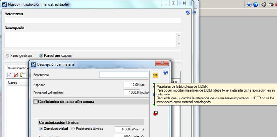 Para los patios, hay que seguir el mismo proceso, eligiendo el forjado, pero ésta vez, protegido frente a la humedad. Para ello copiaremos el forjado o elegiremos un forjado genérico en el que podemos añadir capas. En el botón CTE, añadiremos todos los elementos necesarios. Para obtener esta base de datos, tendremos que tener instalado el programa Líder.