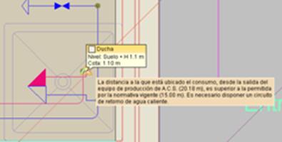 Se dispondrá un circuito de retorno. Para ello colocaremos una tubería vertical de retorno y otra horizontal de retorno has el consumo donde indica el error.